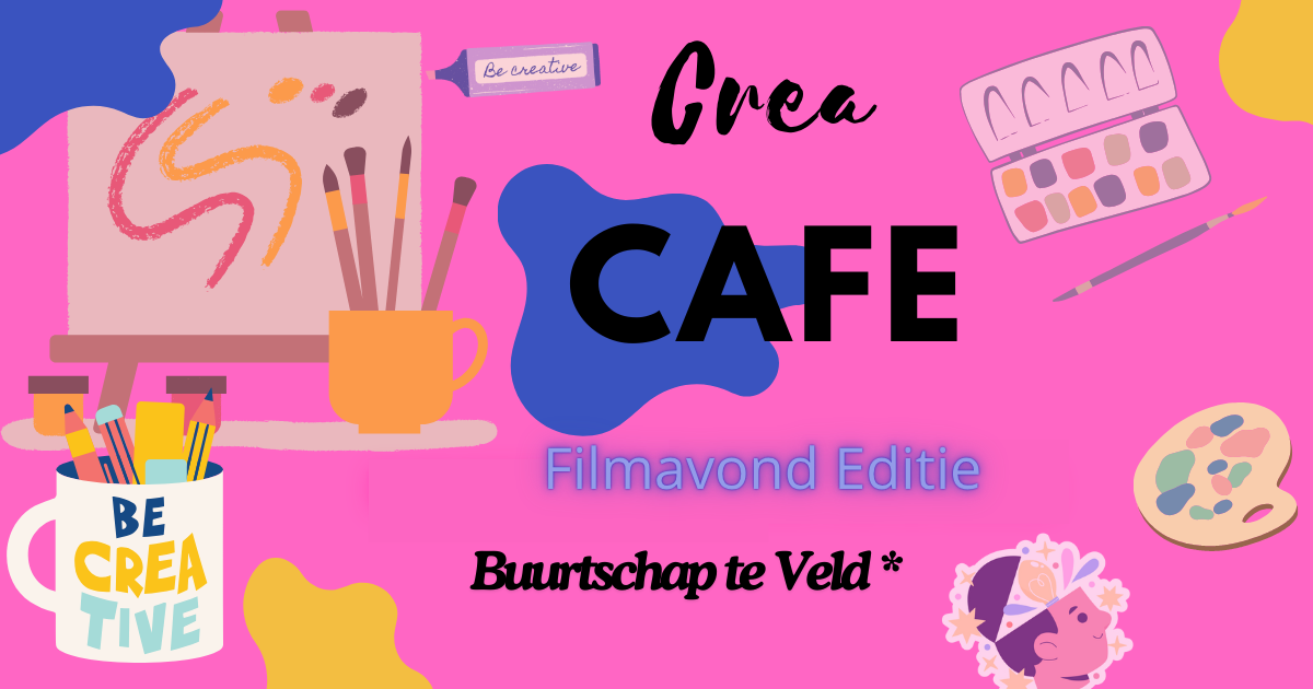 Deze Crea Cafe vrijdag zal een Filmavond editie zijn. Waarbij iedereen werkt aan zijn eigen creatieve project tijdens het kijken van een film. Je kunt van te voren in de Crea Café-Whatsappgroep ook vragen of je mag aansluiten bij iemand anders of als je iets wilt leren. Er wordt o.a. gehaakt, stenen geschilderd, gebreid en getekend.